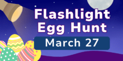 Join us at Oakwood Park for an exciting twist to an old tradition! This adventure takes place at night and you only have your flashlight to guide you! Please bring a flashlight and basket/bag with you to collect eggs.